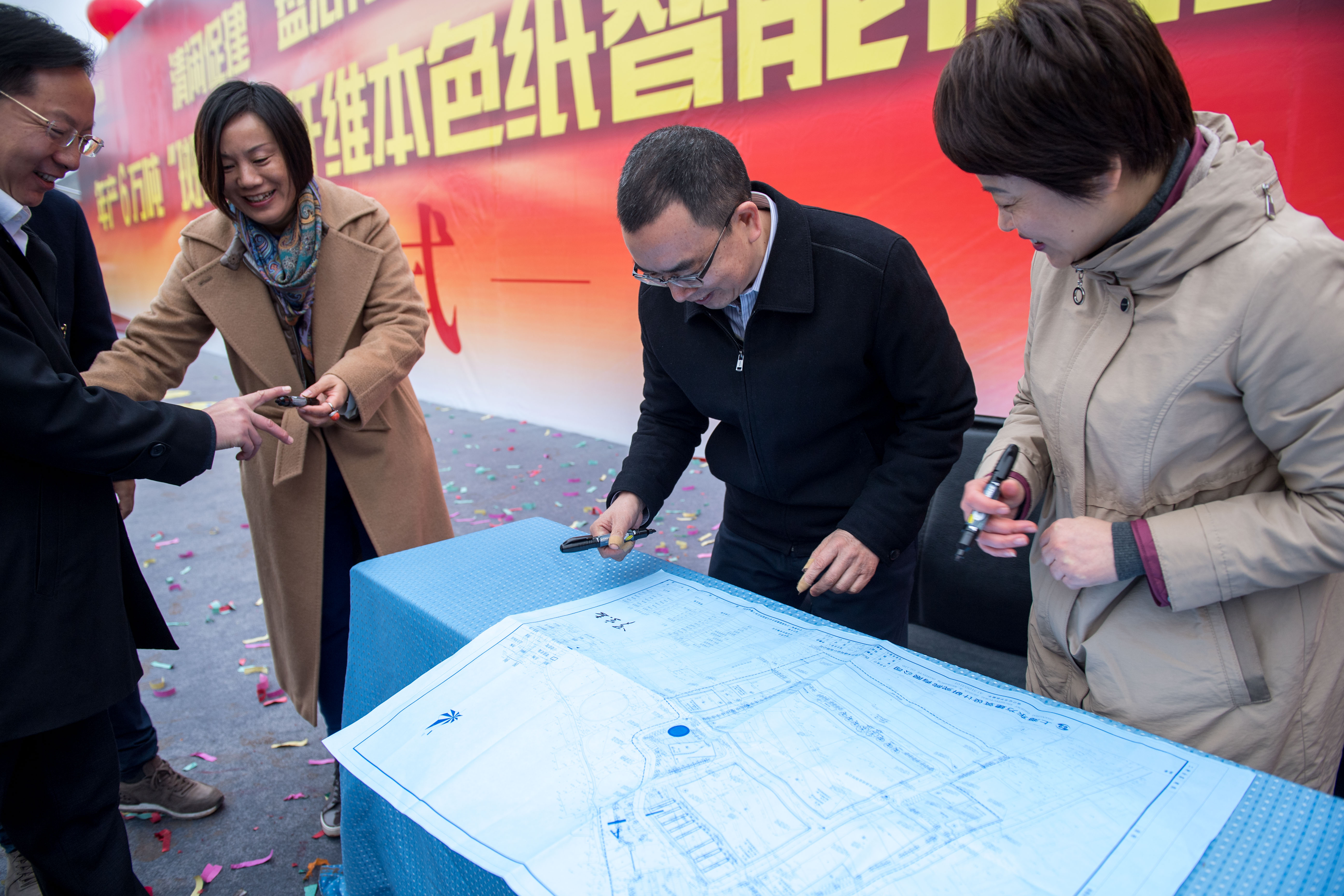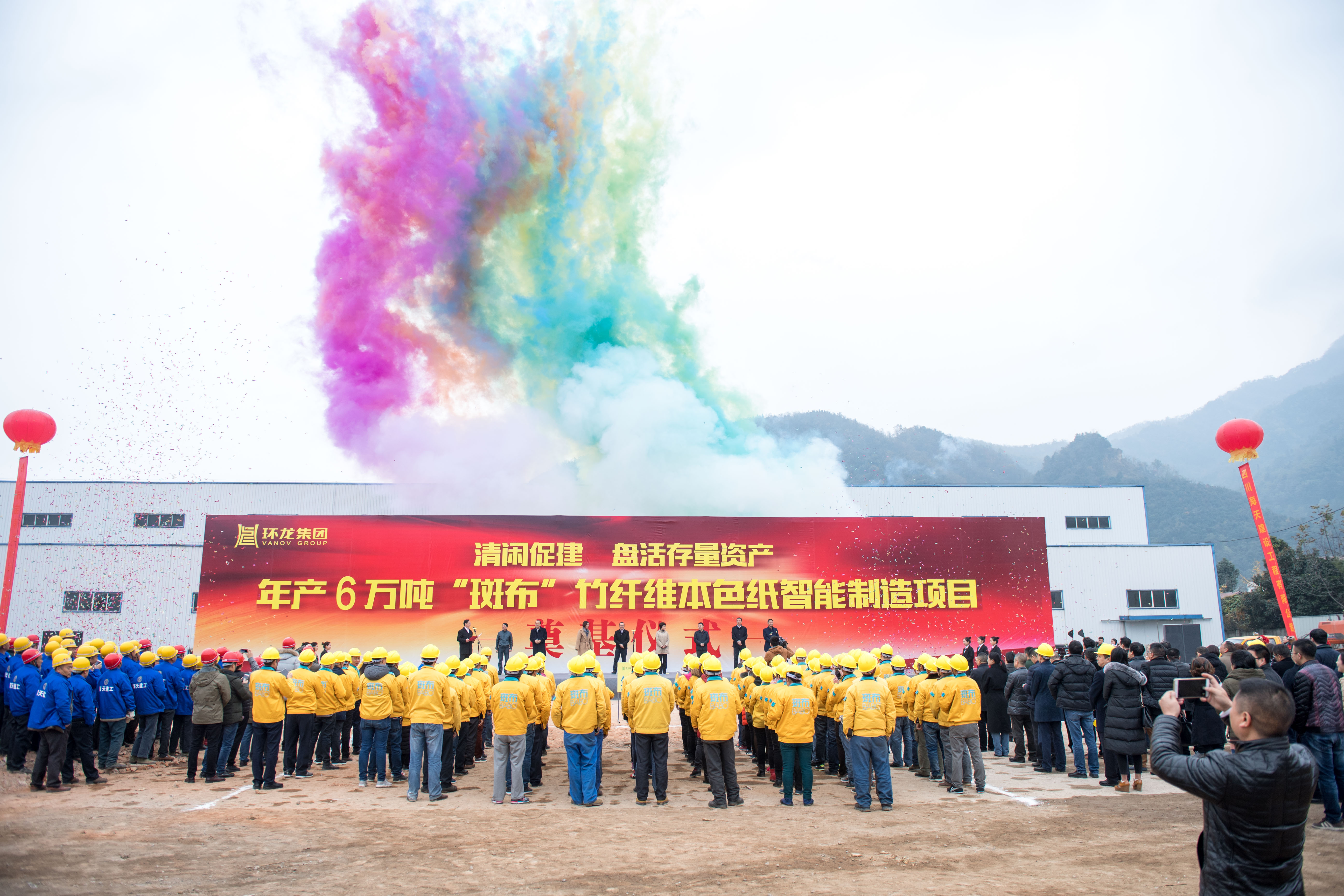 最后,羅宗志副市長(zhǎng)宣布年產(chǎn)6萬(wàn)噸“斑布”竹纖維生活用紙智能制造項(xiàng)目正式開(kāi)工!鳴炮示意,機(jī)器轟鳴,各位領(lǐng)導(dǎo)們?cè)趨⒓拥旎嗤羶x式后合影留念。